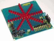 An exciting light effect with 57 led’s which have been placed in eight rows and they look like a star. The “star-light” begins “growing” from the centre to its edges and after that disappears.The speed of “growing” can be easily adjusted.You can connect a second star light or another light effect that you have constructed.There are eight channels to connect the second star or other effect. Ideal for the Christmas tree, parties, shopwindows, end eye-catching signs. V 5VDC P.S. 1169 PCB 120X127mm